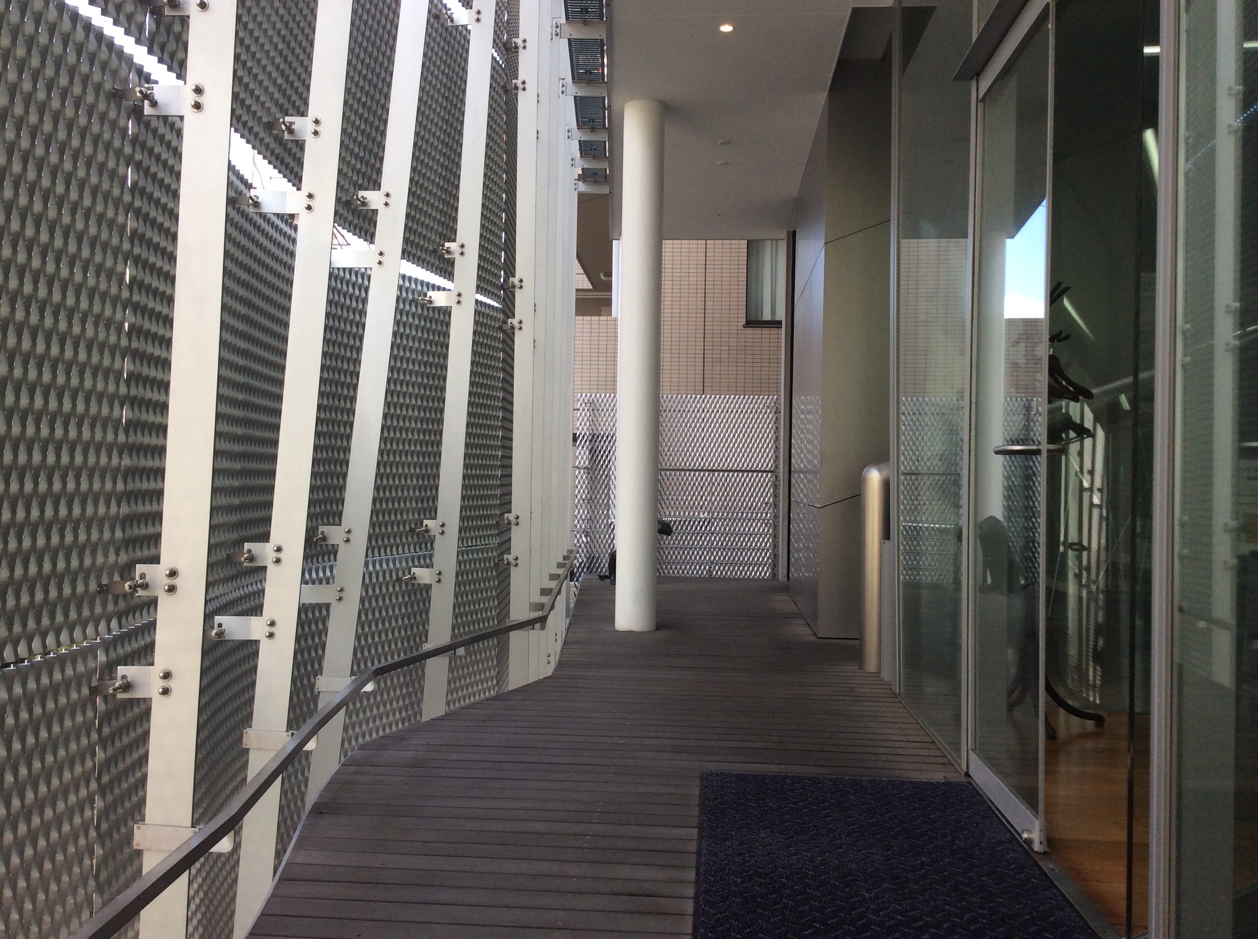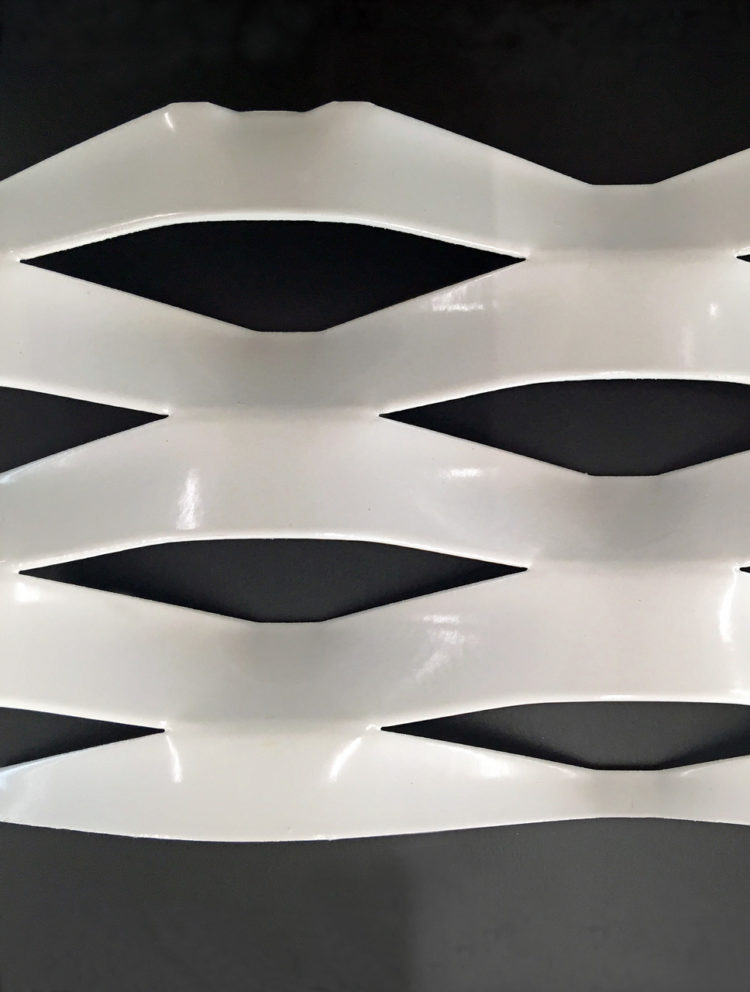 軽やかでシャープな印象の「エキスパンド・メタル」。開放感と適度な遮断性があり、日射や視線を遮る特長があります。また、換気・採光・透過性があり、立体的な形状でありつつ堅牢かつ軽量でもあります。